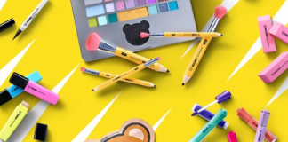 GRIFES CRIAM MAQUIAGEM EM FORMATO DE ITENS DE PAPELARIA